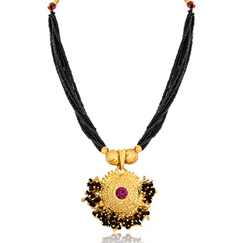 The “Traditional South Indian Temple 1 Gram Gold 18KT Maharashtrian Tanmani Wedding Copper Brass Moti Pearl Beads Marathi Tushi Mangal Sutra Tanmaniya Mani Mala Thushi Mangalsutra Necklace Pendant Locket Choker Sets Jewellery Set for Women Girls Ladies -THUSHI-116” is a stunning and intricately designed piece of jewelry. Made by the top brand MEENAZ, this fashion jewelry set offers a wide range of beautiful accessories for women.
