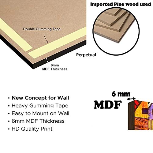 The Perpetual Set of 5 UV multi-effect self-adhesive paintings is a high-quality and durable decorative item for your home or office. The paintings are made on a heavy wooden board with a digital UV coating, making them easy to clean. They have a dimension of 20 x 5 x 0.5 cm and a weight of 666 grams. These paintings can completely transform the atmosphere of any room and can be used in living rooms, kitchens, bedrooms, bathrooms, bars, and more. They also make for a great gift choice for birthdays, anniversaries, and other important occasions. Made in India, these paintings are a stylish and unique addition to any wall decor.